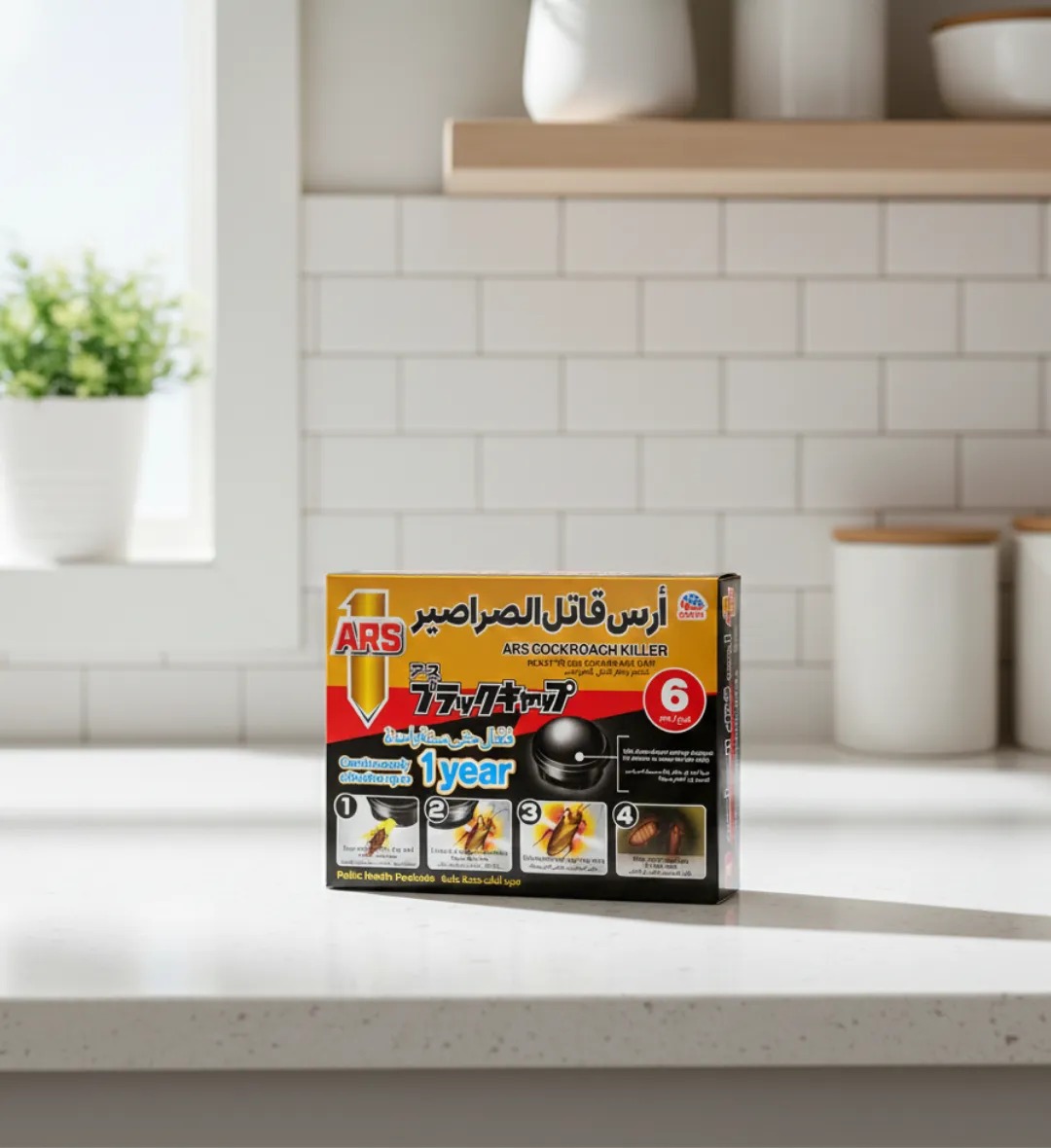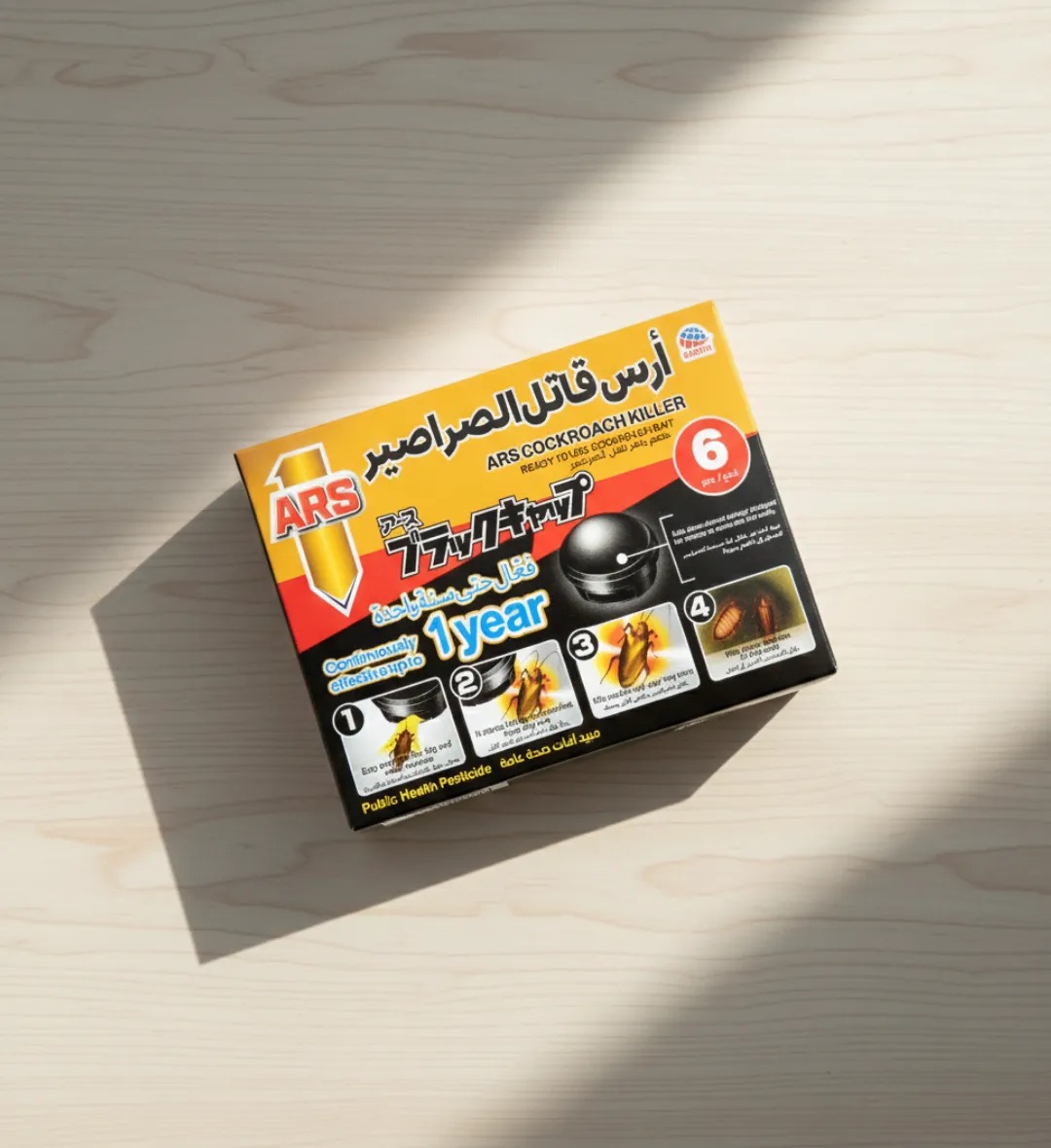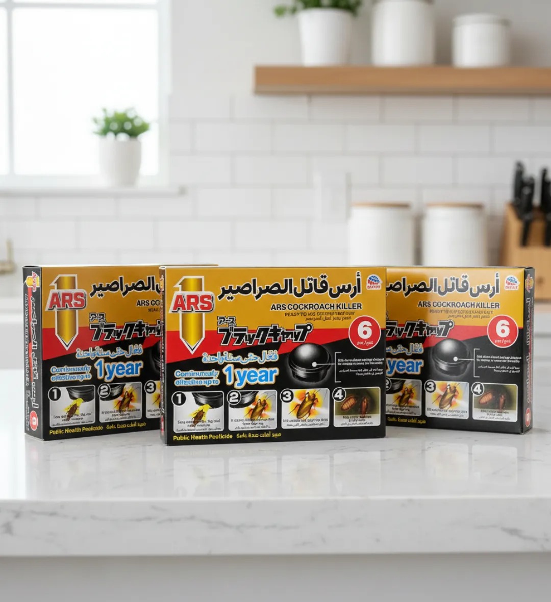 تخلّص من الصراصير نهائياً مع طُعم آرس القاتل للصراصير تركيبة يابانية متطورة تقتل الصراصير من اليوم الأول وتمنحك حماية مستمرة لمدة عام كامل – بدون رائحة وفعّال في المنازل والمطاعم والمطابخ.